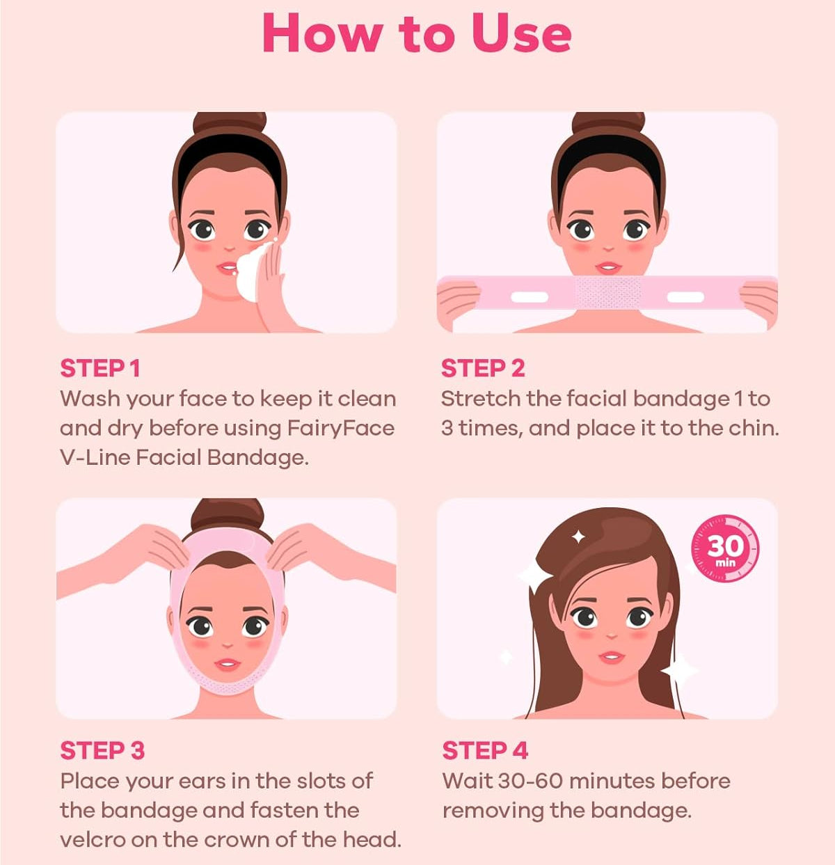 Wear the strap over your chin and around your head for 30–60 minutes daily. Use on clean, dry skin.